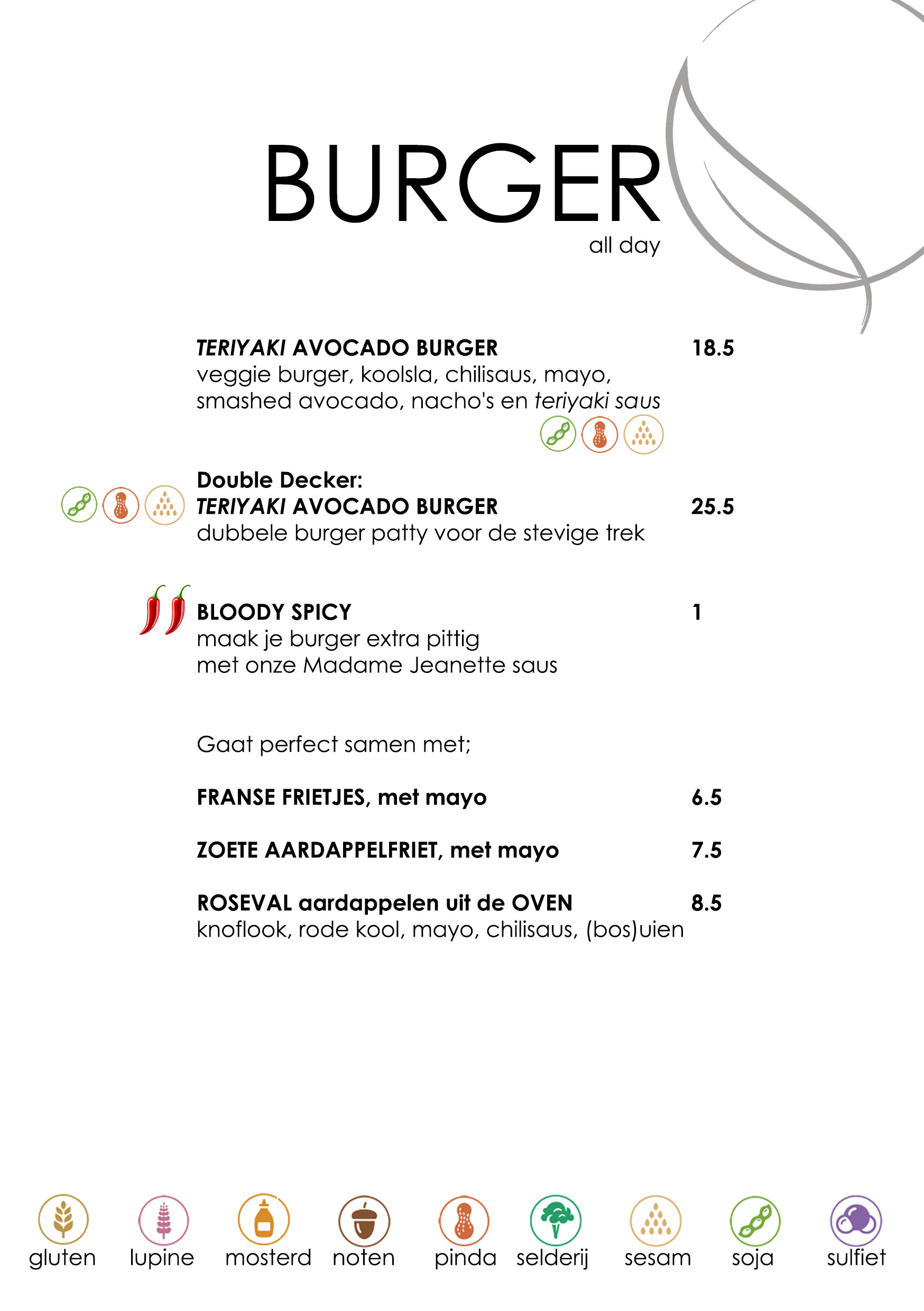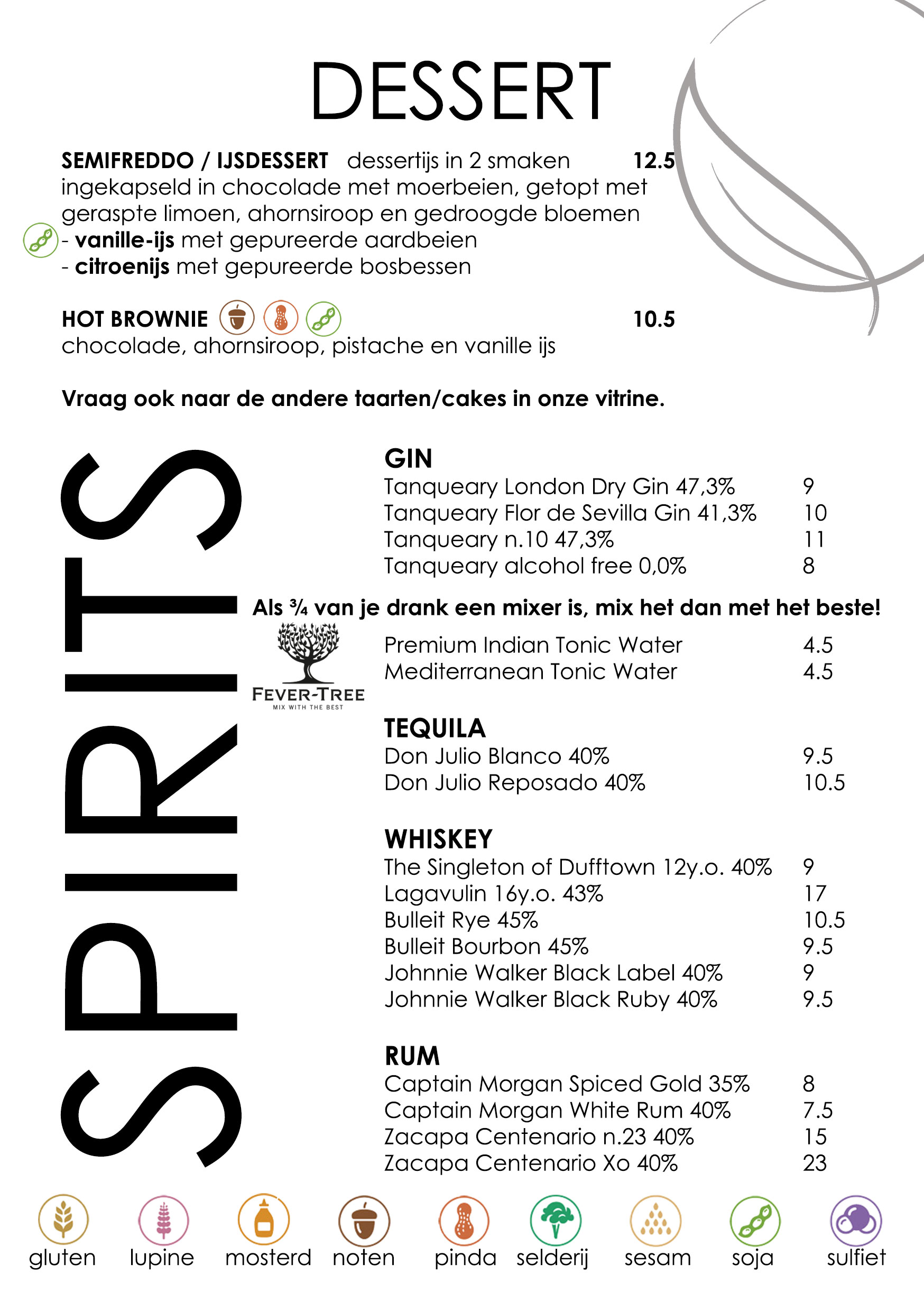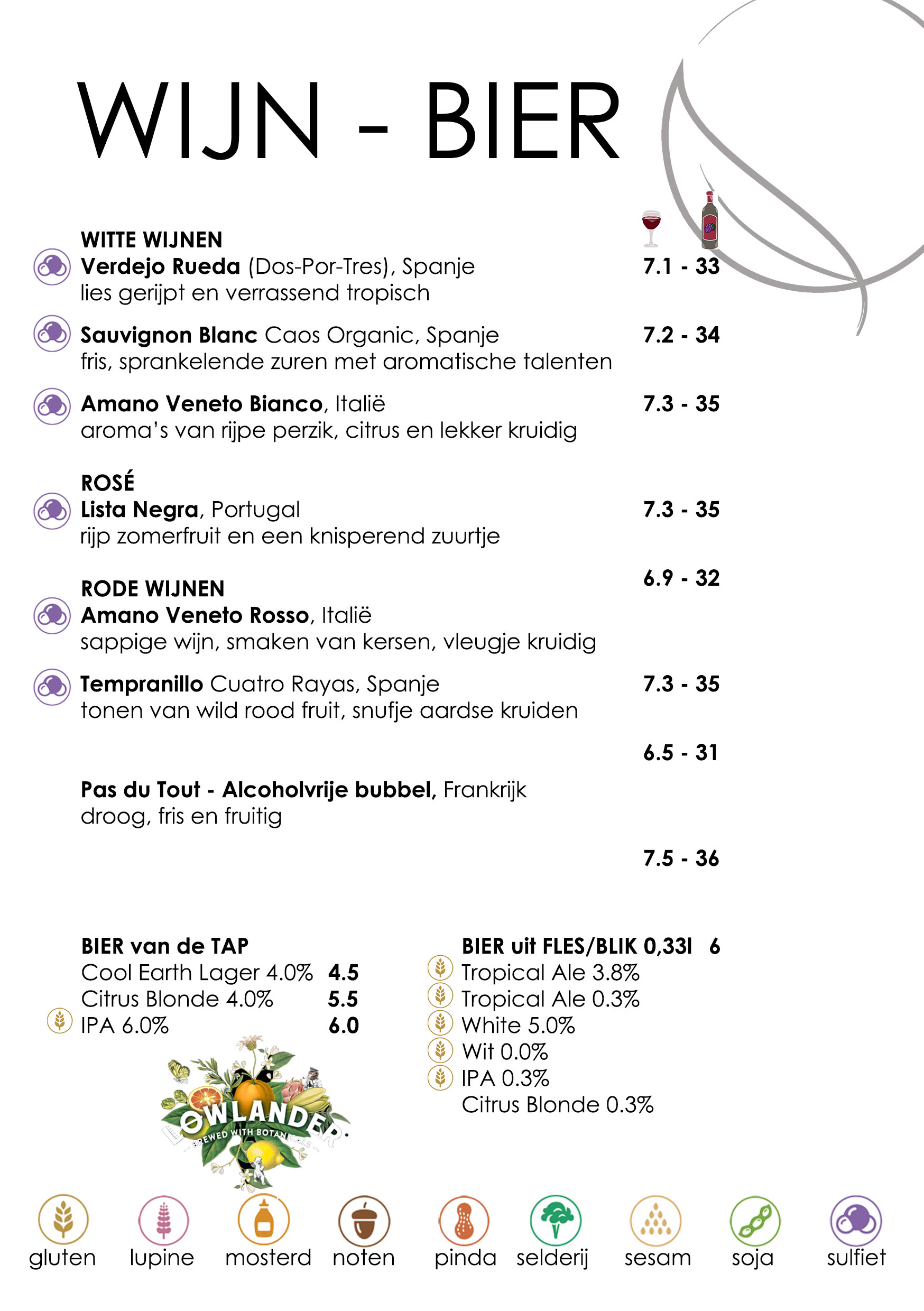 Beste gasten, we zijn druk bezig met het samenstellen van ons nieuwe menu. We verwachten deze medio September met jullie hier te kunnen delen!